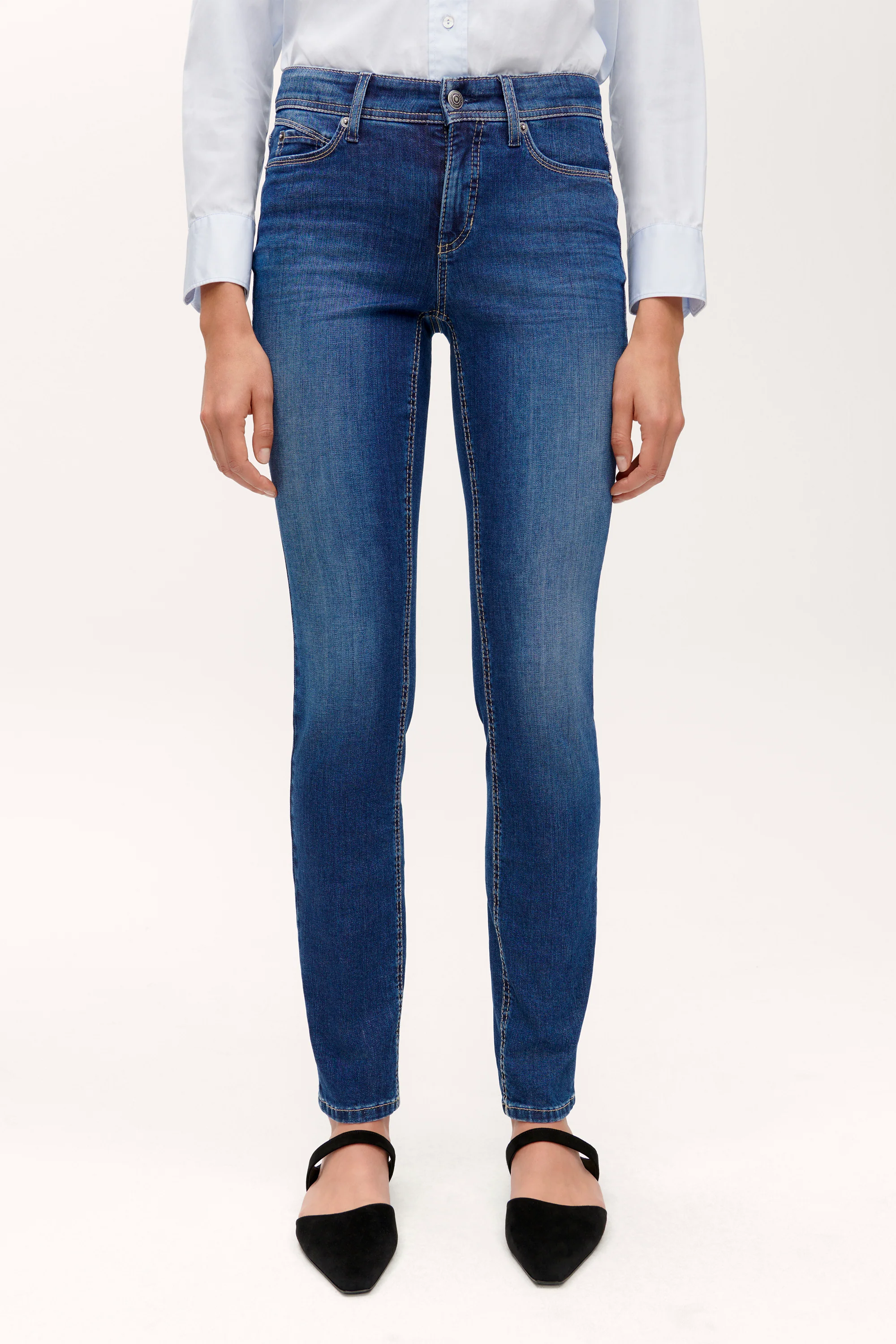 Slim Fit Jeans PARLA in Full Length. Die Jeans wird aus Bio Baumwolle gefertigt und sorgt durch Superstretch für Komfort und den perfekten Fit. Erhältlich in Blau, Dunkelblau und Schwarz.