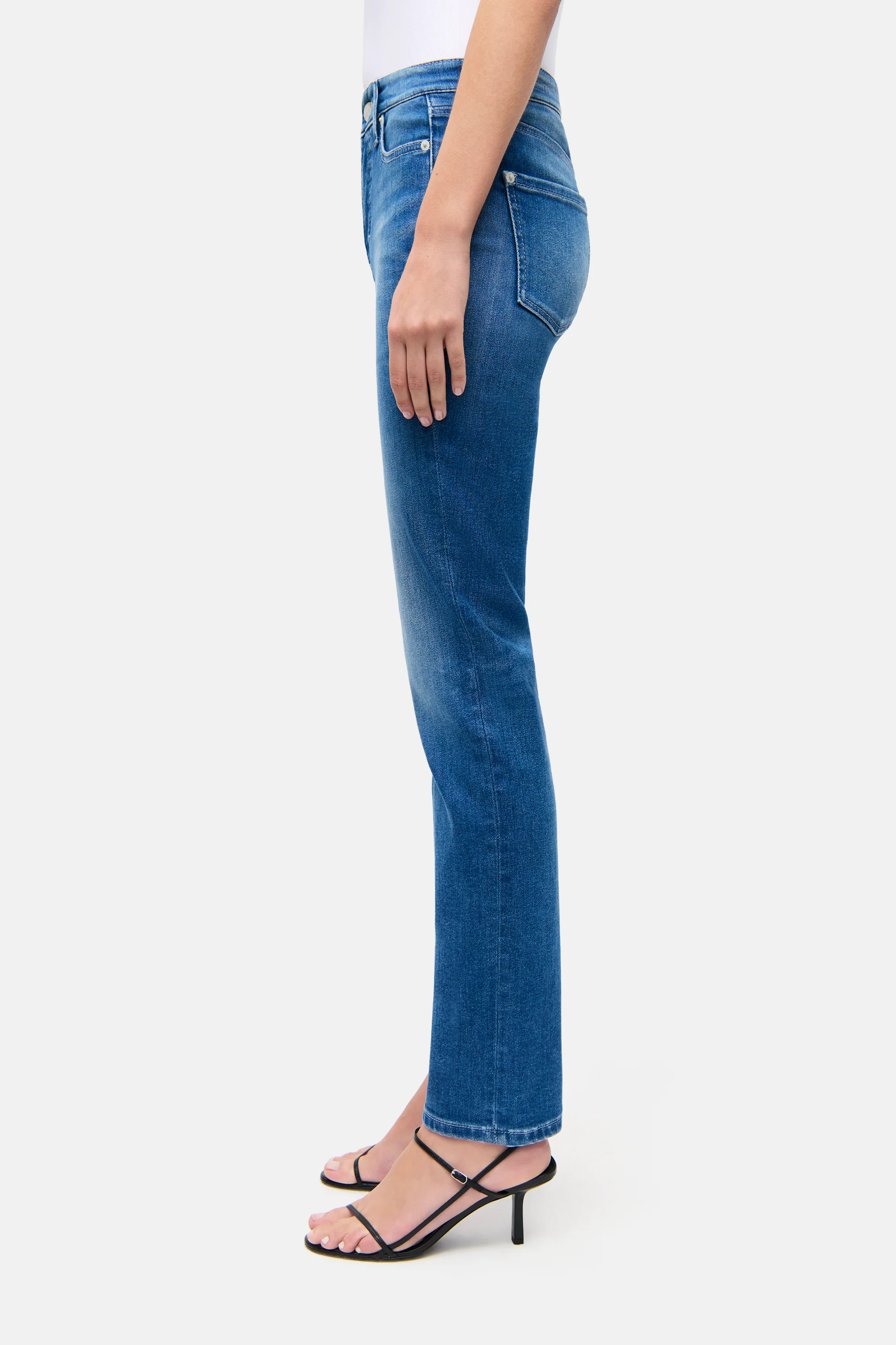 Slim Fit Jeans PIPER LONG in Full Length. Diese blaue Slim-Fit-Jeans besteht aus einem besonders weichen, elastischen Denim, der sich angenehm anlegt und den ganzen Tag bequem bleibt. Durch den Lyocell-Anteil fühlt sich das Material geschmeidig an und unterstützt einen glatten, gepflegten Look. Die moderne blaue Waschung verleiht der Jeans eine zeitgemäße Note, während klassische 5-Pocket-Details und silberne Akzente den Stil authentisch abrunden – ein vielseitiges Everyday-Piece mit hochwertigem Tragegefühl. Erhältlich in Blau und Weiß.