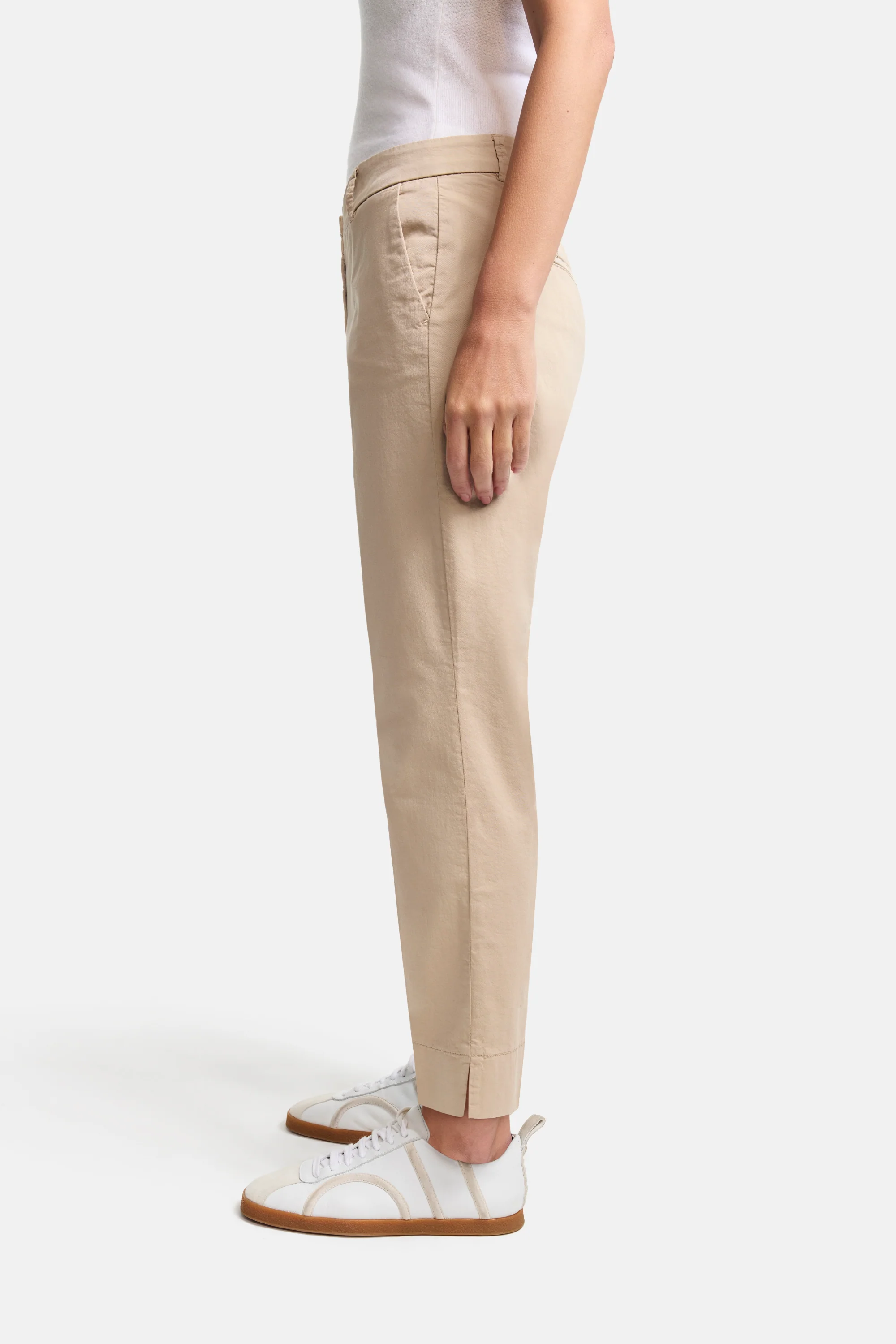 Slim Fit Hose STELLA in verkürzter Länge. Die Hose in schafft durch den Stretchanteil hohen Komfort und überzeugt durch einen cleanen Look und dem Lightweight Chino Gabardine. Erhältlich in Sand.