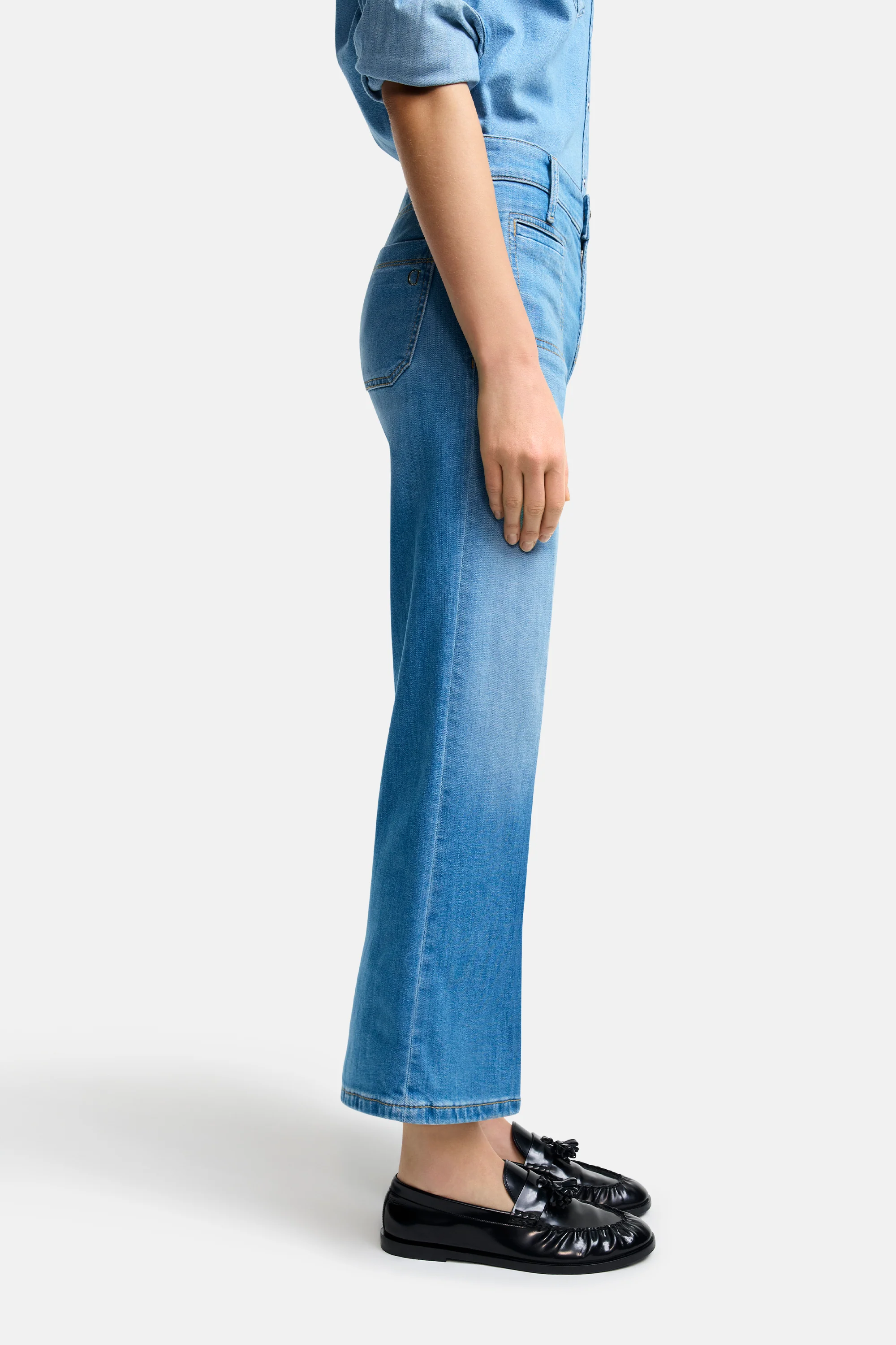 TESS Jeans in verkürzter Länge. Erweitern Sie Ihr Jeans-Sortiment um eine angesagte Silhouette: ein weites, fließendes Bein in Kombination mit aufgesetzten Taschen. Die authentische Waschung und der leichte Stoff machen die Denim zu Ihrem neuen Lieblingsbegleiter.